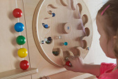 Шарики в лабиринте скрыты под прозрачным акриловым стеклом. При вращении они разлетаются внутри диска в разные стороны.