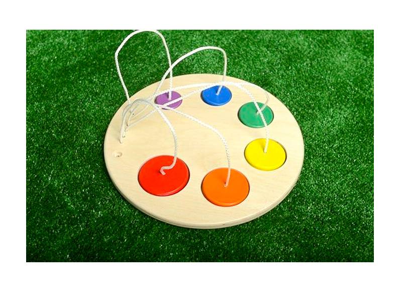 Яркая игрушка "Палитра" из натурального дерева предназначена для развития у детей мелкой моторики. Также может быть использована для упражнений на изучение цветов.