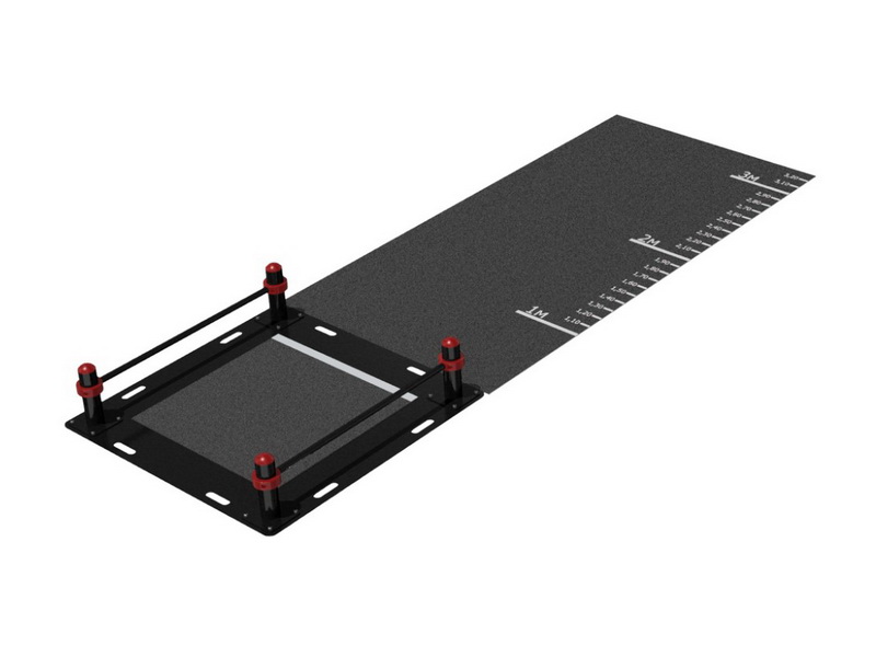 Комплекс состоит из основания стального, четырех стоек, двух перекладин, дорожки для приземления с разметкой длины. Основание стальное имеет размеры (ДхШхВ)мм: 1490х1490х6 мм. Для удобства переноса основание имеет вырезы. На основании имеются резьбовые шпильки для фиксации стоек. На основании закреплен лист резинового спортивного покрытия толщиной 4 мм.