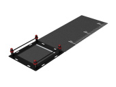 Открытые торцы стоек закрыты заглушками. Покрытие основания ,стоек, хомутов и перекладин: порошковое покрытие. Дорожка для прыжков в длину выполнена из листовго резинового спортивного покрытия шириной 1490 мм длиной 3000 мм с нанесенной разметкой до 320 см.
