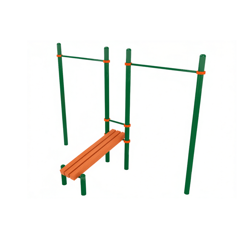 Комплекс изготавливается из металлической трубы, окрашенной полимерно-порошковой краской, устойчивой к воздействию неблагоприятных погодных условий и ультрафиолета.