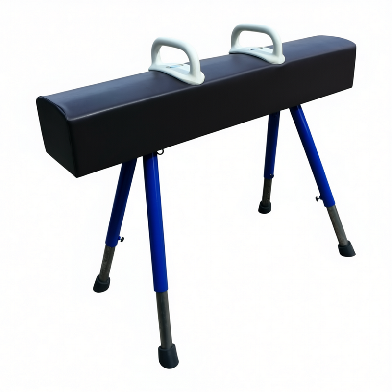 Конь гимнастический маховый предназначен для выполнения упражнений по гимнастике на тренировках. Конь состоит из деревянного корпуса (покрыт плотной обивкой и обтянут мебельной искусственной кожей), двух ручек установленных на корпусе коня, четырех ножек с регулировкой высоты, ножки снабжены резиновыми копытами. Углы и края корпуса имеют закругленную форму.