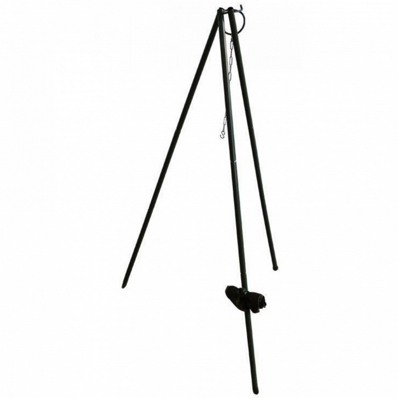 Складная костровая тренога с крючком предназначена для подвешивания походного котла (казана).