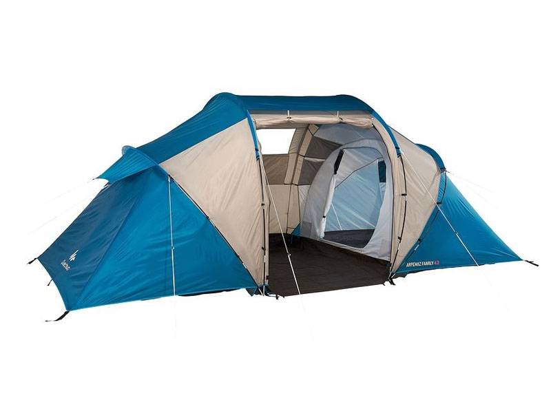 Двухкомнатная палатка на 4 места. Высокий тамбур с напольным покрытием с загнутыми краями. Тент тамбура с подкладкой предотвращает конденсацию.