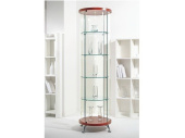 Круглая стеклянная витрина для торговли на узком основании толщиной 35 мм. В комплект витрины входят: 4 стеклянные полки, светильник 20 Вт, 4 ножки, замок, трансформатор 220/12 В мощностью 60 Вт, шнур с выключателем и вилкой 1,5 м.